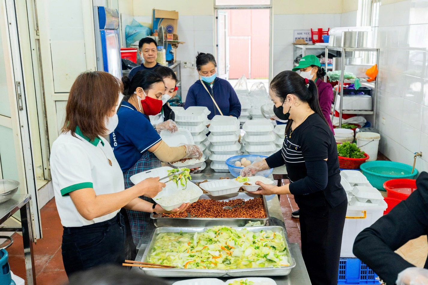 Hình ảnh 2: Suất ăn được các thành viên tự tay đóng hộp sạch sẽ, đảm bảo ATVSTP