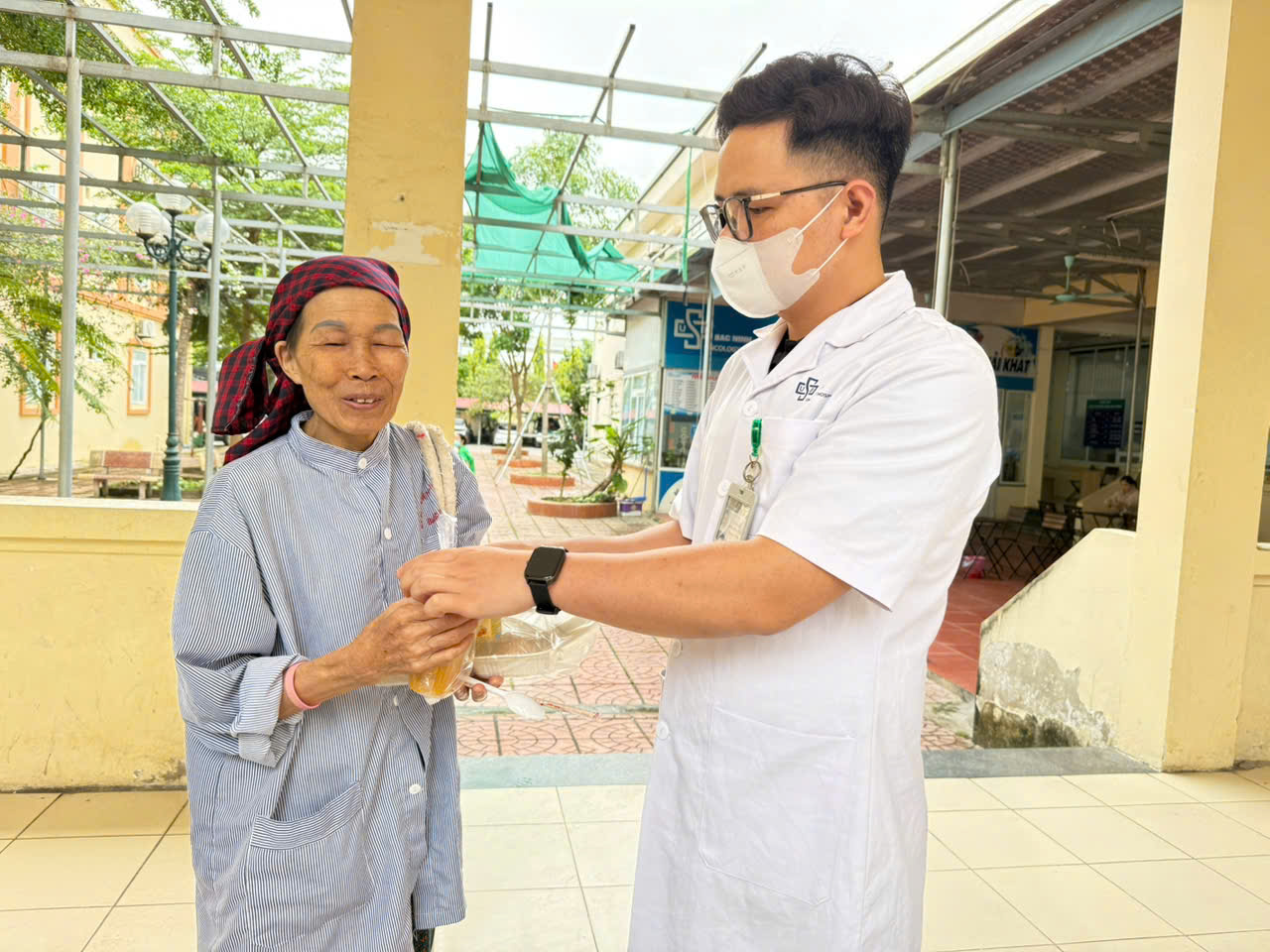 Nhằm sẻ chia khó khăn, tiếp thêm động lực cho người bệnh trong quá trình điều trị, ngày 23/4/2026, Tổ Công tác xã hội, Bệnh viện Ung bướu Bắc Ninh đã phối hợp cùng Câu lạc bộ Thiện Tâm - thuộc Tiểu ban Bảo trợ Miền Bắc, Giáo hội Phật giáo Việt Nam, trao tặng trực tiếp những suất ăn nghĩa tình đến tận tay người bệnh đang nằm điều trị nội trú tại bệnh viện.