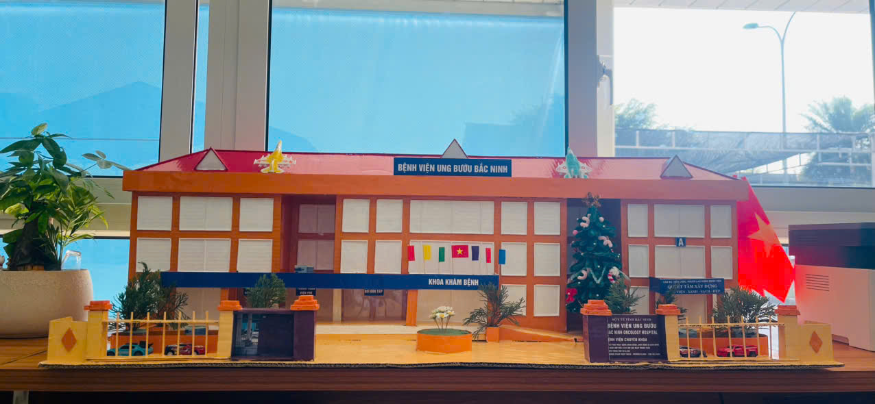 Mô hình bệnh viện được thiết kế từ các hộp bìa tái chế, mô phỏng các khu vực như: khu khám bệnh, phòng điều trị, khu cấp cứu, khu hành chính… Qua đó giúp trực quan hóa không gian bệnh viện, hỗ trợ tốt cho công tác tuyên truyền, đào tạo, giảng dạy và trưng bày trong các hoạt động phong trào, hội thi, sinh hoạt chuyên môn.