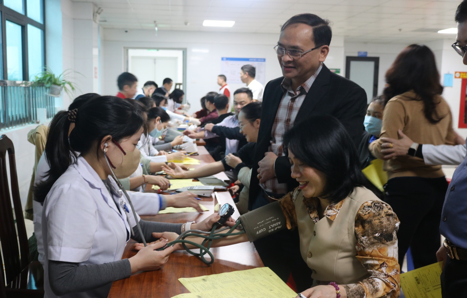 Ảnh 4: Các đồng chí lãnh đạo Bệnh viện Ung bướu Bắc Ninh tích cực tham gia hiến máu tình nguyện