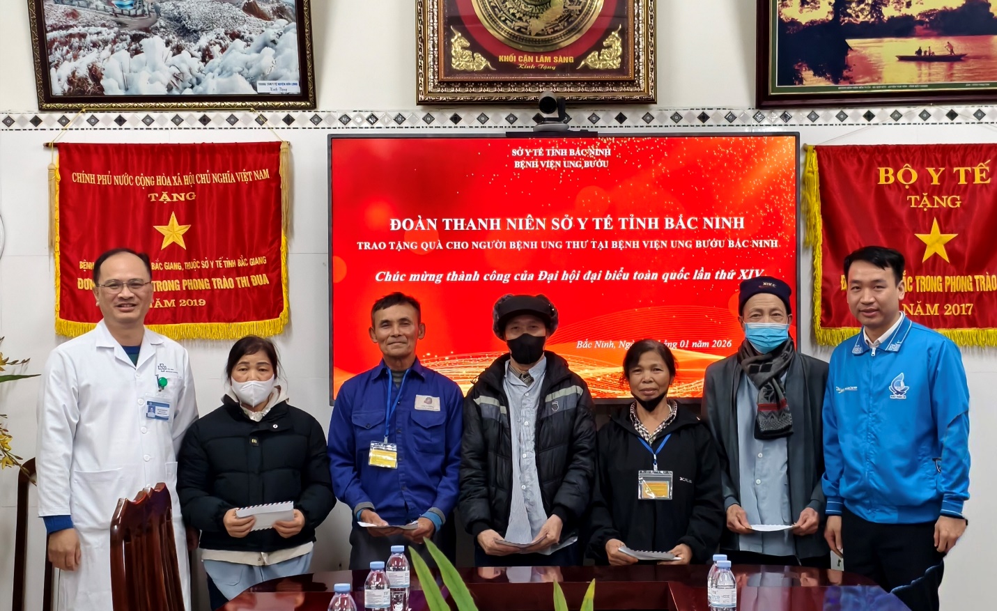 Ngày 26/01/2026, thiết thực chào mừng thành công Đại hội đại biểu toàn quốc lần thứ XIV của Đảng, Đoàn Thanh niên Sở Y tế tỉnh Bắc Ninh đã tổ chức chương trình trao tặng quà và suất ăn miễn phí cho người bệnh ung thư có hoàn cảnh đặc biệt khó khăn đang điều trị nội trú tại Bệnh viện Ung bướu Bắc Ninh.