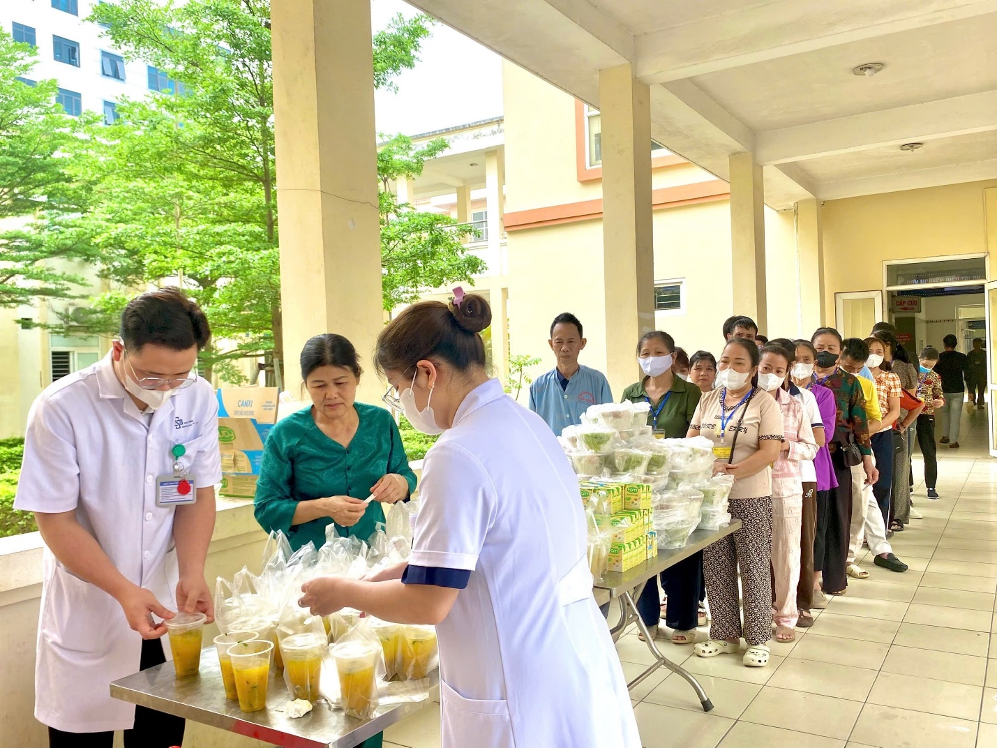 Tại hành lang Bệnh viện Ung bướu Bắc Ninh, những hàng dài ngăn nắp nối tiếp nhau. Từng suất cơm, từng hộp sữa được các thành viên Câu lạc bộ Thiện Tâm tận tay trao gửi cùng lời thăm hỏi ân cần: "Cố gắng ăn cho khỏe bác nhé!", "Mọi chuyện rồi sẽ ổn thôi!"...
