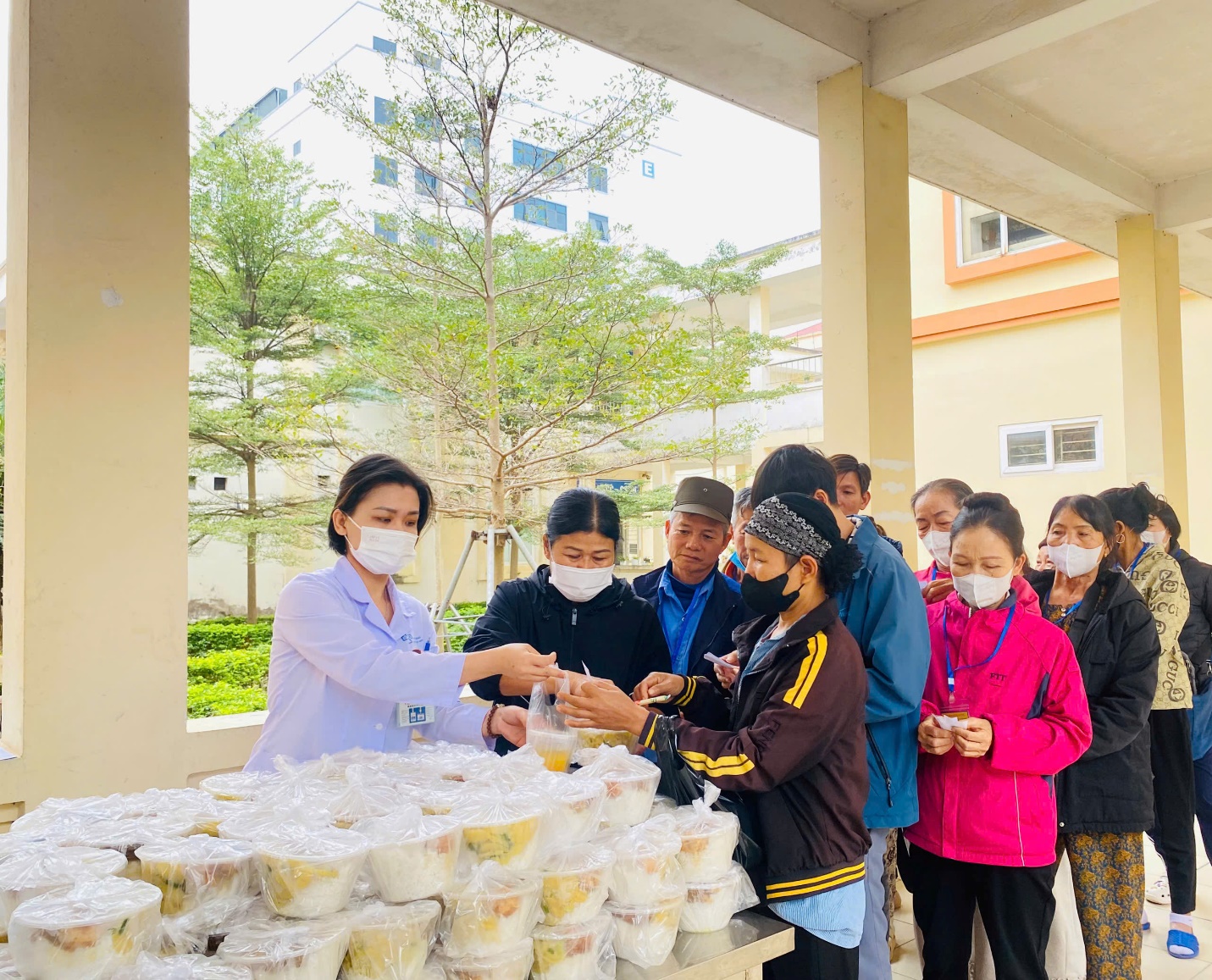 Với tinh thần sẻ chia và đồng hành cùng người bệnh, hằng tháng Tổ Công tác xã hội Bệnh viện Ung bướu Bắc Ninh phối hợp với Câu lạc bộ Thiện Tâm - Tiểu ban Bảo trợ miền Bắc tổ chức trao tặng các suất ăn miễn phí tới người bệnh đang điều trị nội trú tại bệnh viện, góp phần hỗ trợ đời sống sinh hoạt và động viên tinh thần người bệnh trong quá trình điều trị.
