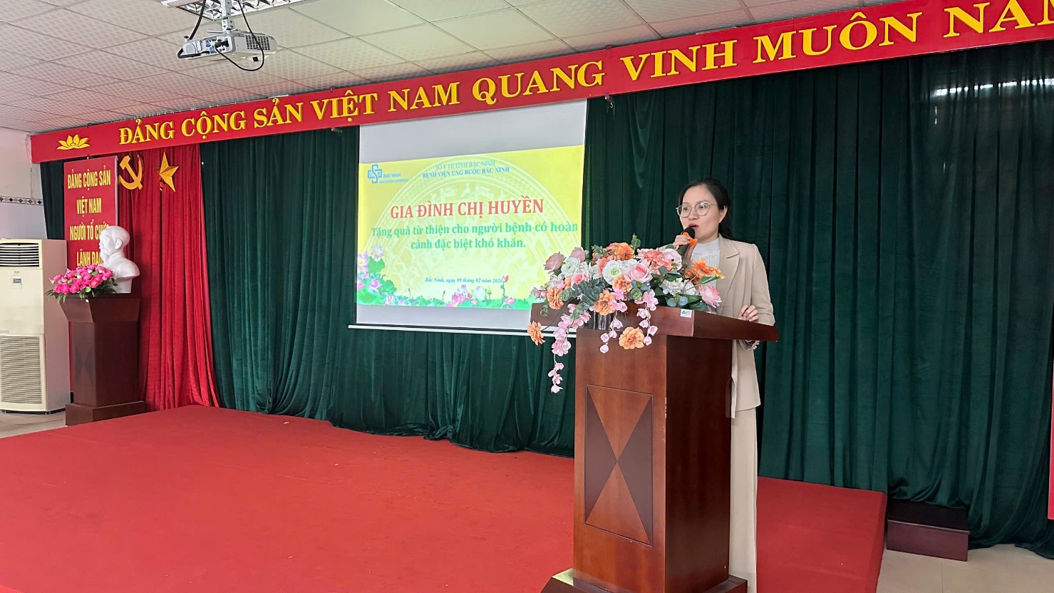 Trong hành trình điều trị còn nhiều vất vả của người bệnh ung thư, mỗi sự quan tâm đều trở nên thật đáng quý. Ngày 09/2/2026, gia đình anh chị Tuấn Huyền; địa chỉ: Phường Bắc Giang, tỉnh Bắc Ninh đã gửi tặng 14 suất quà, mỗi suất trị giá 500.000 đồng, tới những người bệnh có hoàn cảnh khó khăn đang điều trị tại Bệnh viện Ung bướu Bắc Ninh.