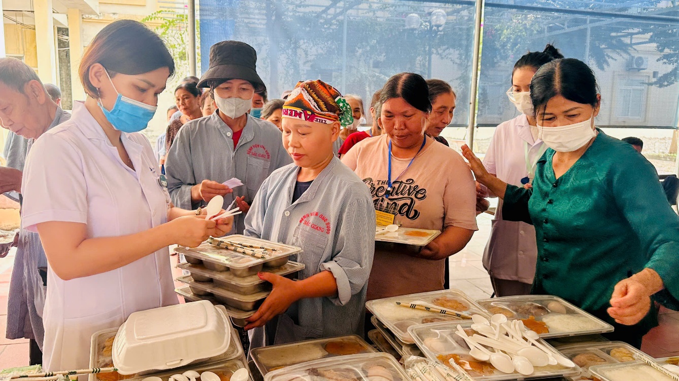Những hộp cơm nóng hổi, gọn gàng được trao tận tay từng người bệnh và người nhà trong không khí ấm áp, thân tình. Dù bữa cơm giản dị nhưng chứa chan tình cảm, gửi gắm trong đó sự quan tâm và sẻ chia của cộng đồng dành cho những người bệnh đang gồng mình chống lại bệnh tật.