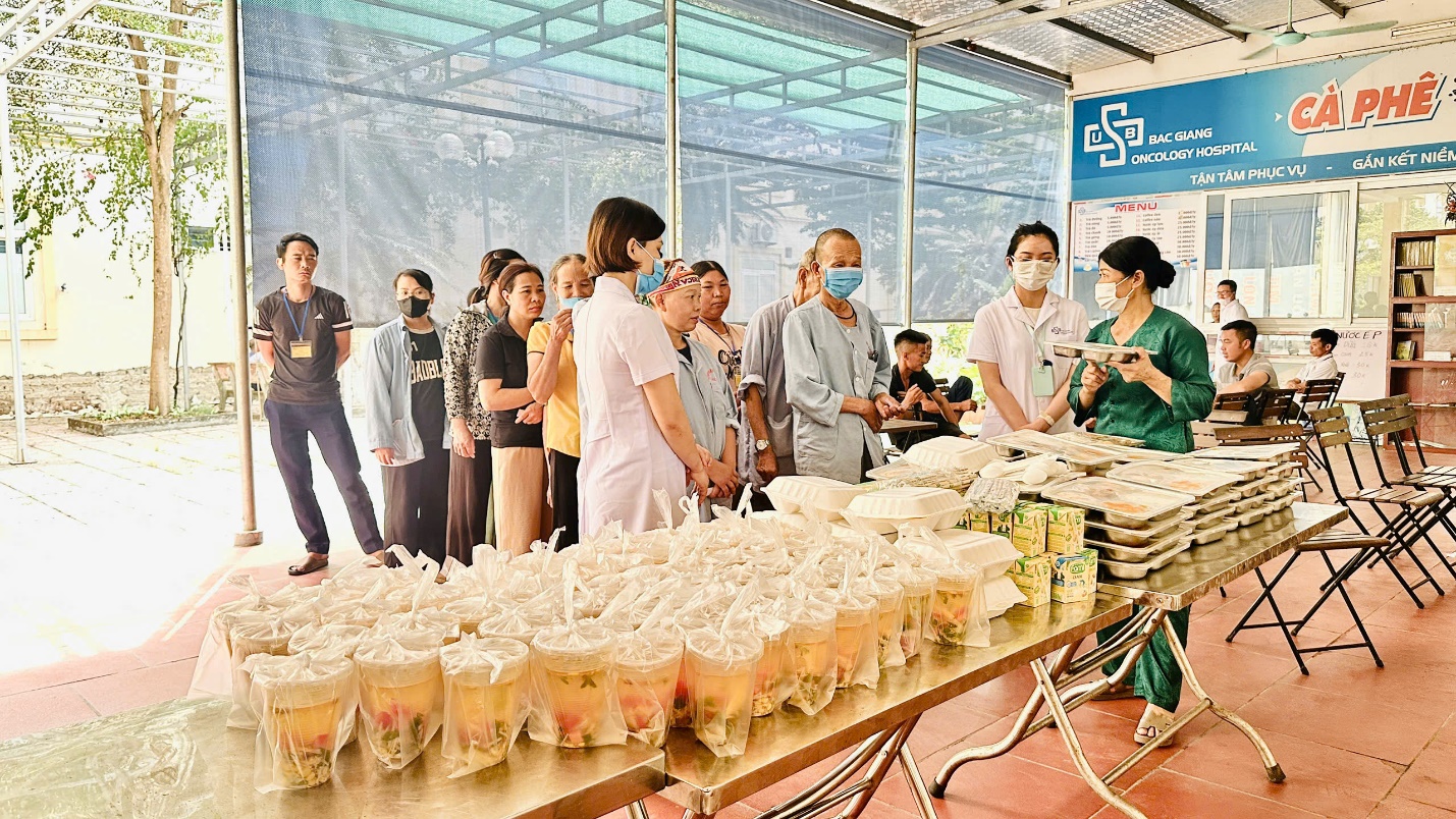 Sáng ngày 23/9/2025, Tổ Công tác xã hội - Bệnh viện Ung bướu Bắc Ninh phối hợp cùng Câu lạc bộ Thiện Tâm thuộc tiểu ban bảo trợ Miền Bắc - Giáo hội Phật giáo Việt Nam đã trao tận tay 50 suất cơm canh nóng hổi và những hộp sữa dinh dưỡng tới người bệnh không may mắc phải căn bệnh hiểm nghèo đang điều trị nội trú tại bệnh viện.