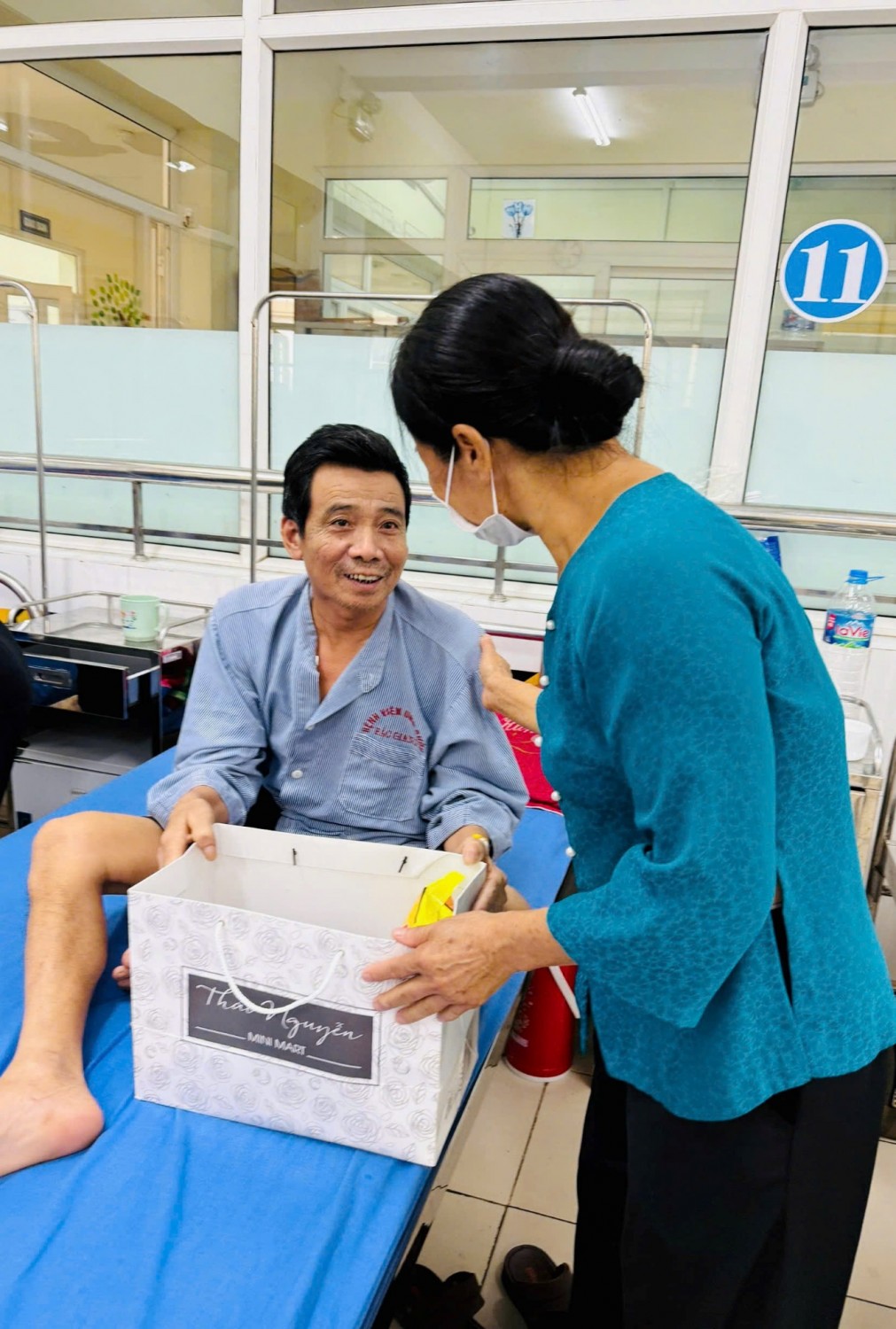 Không rộn ràng tổ chức, không lễ nghi cầu kì, chỉ là những cuộc gặp gỡ nhẹ nhàng, những ánh mắt biết ơn, những nụ cười ấm áp bên những buồng bệnh...nhưng đủ dể chạm dến trái tim.