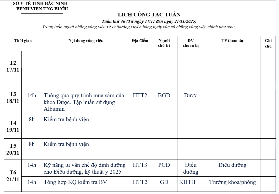 Tuần thứ 46 (Từ ngày 17/11 đến ngày 21/11/2025)