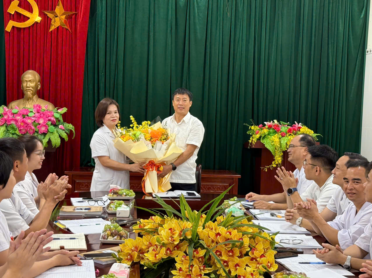 Hình ảnh 1. Đ/c Nguyễn Danh Song – Giám đốc bệnh viện tặng hoa Chúc mừng 20/10 đến Chị em nhân ngày 20/10