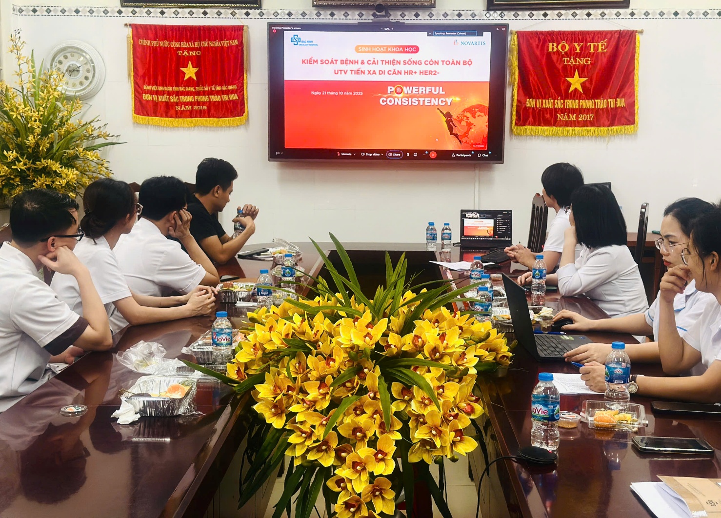 Nhằm cập nhật những tiến bộ mới trong điều trị ung thư vú và tạo cơ hội giao lưu, trao đổi chuyên môn giữa các chuyên gia đầu ngành, chiều ngày 21/10/2025, Bệnh viện Ung bướu Bắc Ninh phối hợp cùng Công ty TNHH Novartis Việt Nam tổ chức sinh hoạt khoa học chuyên đề “Kiểm soát bệnh & cải thiện sống còn toàn bộ ung thư vú tiến xa di căn HR+ HER2-”.