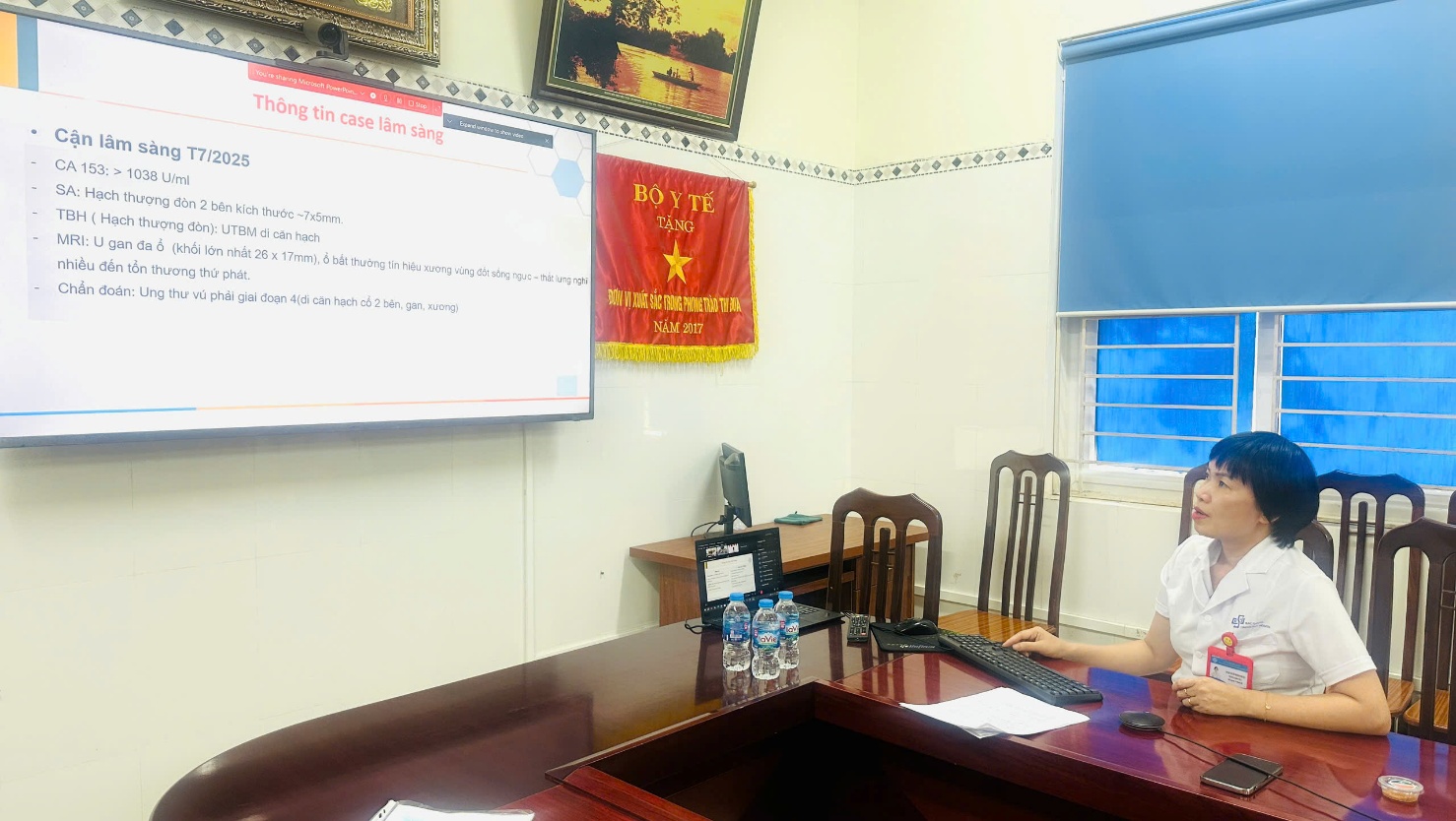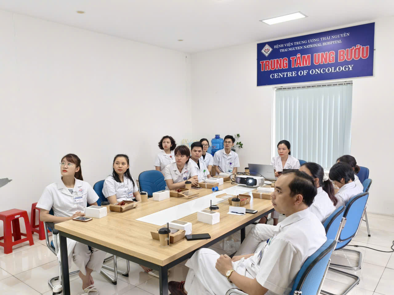 Chương trình được tổ chức trực tiếp tại Bệnh viện Ung bướu Bắc Ninh, đồng thời kết nối trực tuyến với Bệnh viện K và Bệnh viện Trung ương Thái Nguyên thông qua nền tảng Webex meeting.