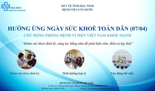 Bên cạnh đó, Bệnh viện khuyến khích cán bộ y tế và người dân duy trì lối sống lành mạnh thông qua việc tăng cường vận động thể chất hằng ngày, xây dựng chế độ dinh dưỡng khoa học cho mọi lứa tuổi và giữ gìn môi trường sống xanh - sạch - đẹp. Với thông điệp “Sức khỏe cho mọi người - Hạnh phúc cho mọi nhà”, Bệnh viện Ung bướu Bắc Ninh kêu gọi mỗi người dân hãy chủ động bảo vệ và chăm sóc sức khỏe bản thân một cách liên tục, hướng tới một cộng đồng khỏe mạnh và phát triển bền vững.