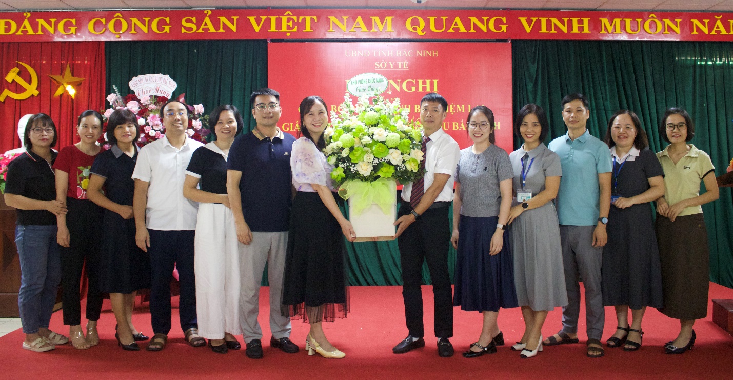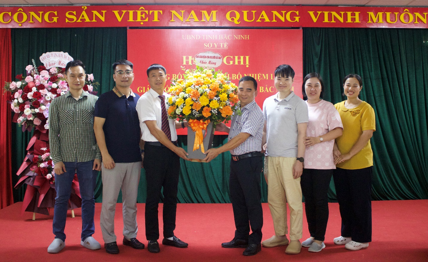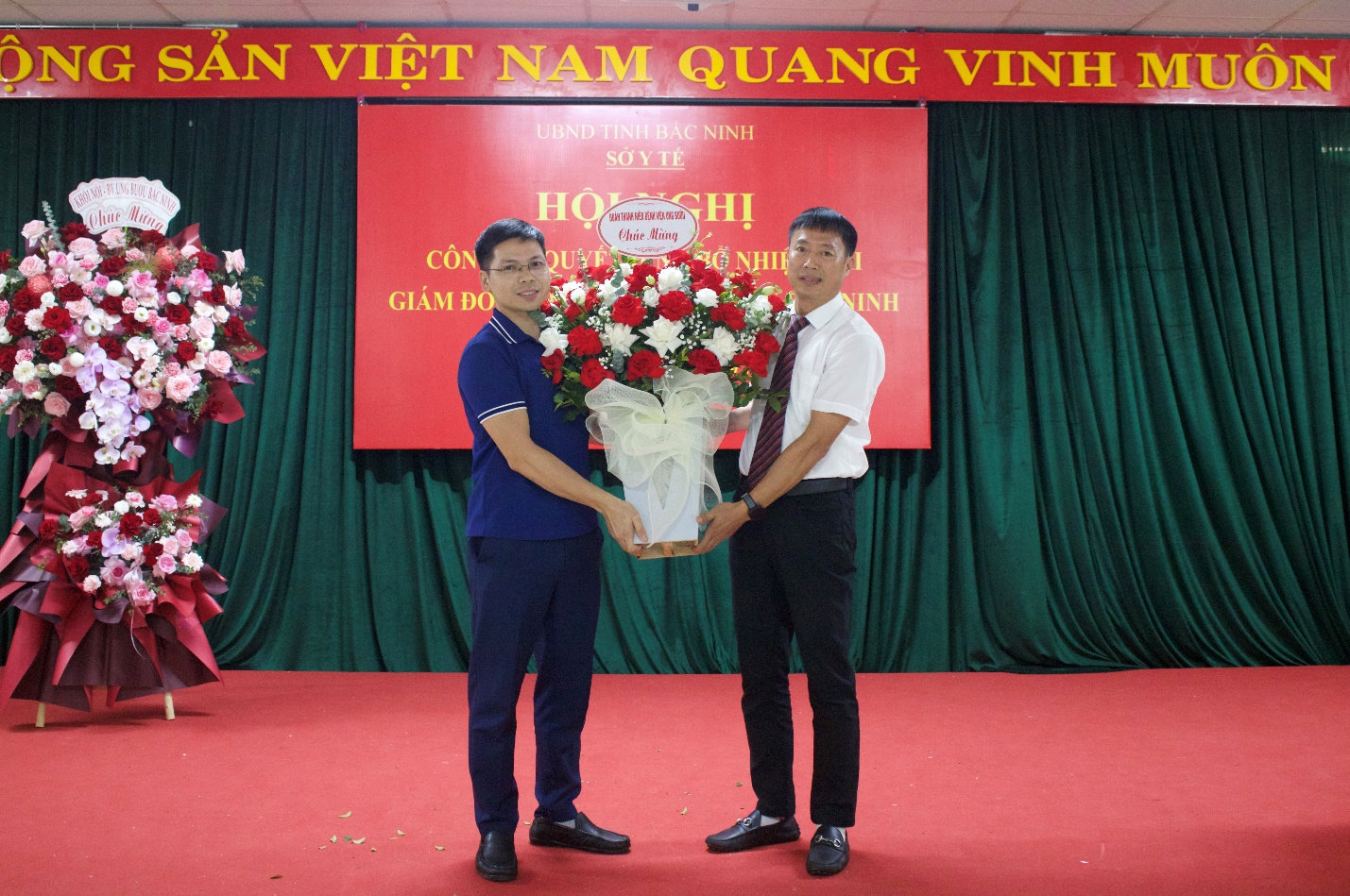 Ảnh 1: Đ/c Nguyễn Văn Bình - Phó Giám đốc Sở Y tế tỉnh Bắc Ninh trao Quyết định cho đ/c Nguyễn Danh Song